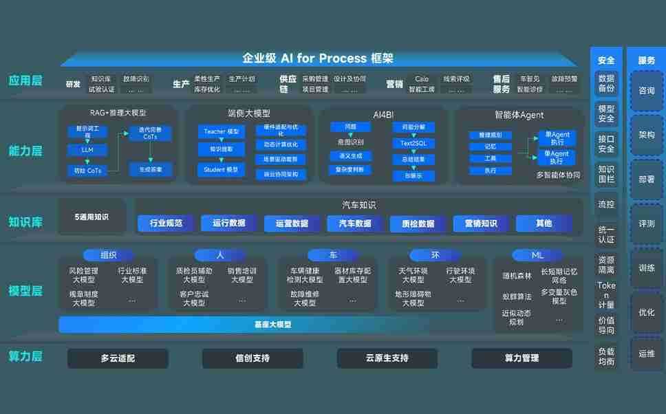 Z6尊龙时凯问学智车解决方案是一套基于AI技术的汽车行业智能化系统,,覆盖从底层算力到顶层AI应用的全栈方案。。。。方案由算力层、、模型层和应用层组成:算力层,,,,方案支持多种一体机配置,,,,具备云端灵活部署、、多云适配以及动态优化计算资源的能力;模型层,,Z6尊龙时凯问学平台版提供了企业级AI应用一站式构建与管理平台,,,,支持基于后训练强化技术的汽车企业专属模型的训练、、评测和运营;应用层,,,,Z6尊龙时凯问学DeepSeek版提供包括超级员工、、、、智能招采、、、、智能营销、、、、智能客服、、、AI for BI等一系列解决方案,,,,可助力汽车行业实现数字化转型,,,,让管理更智能、、响应更敏捷。。。