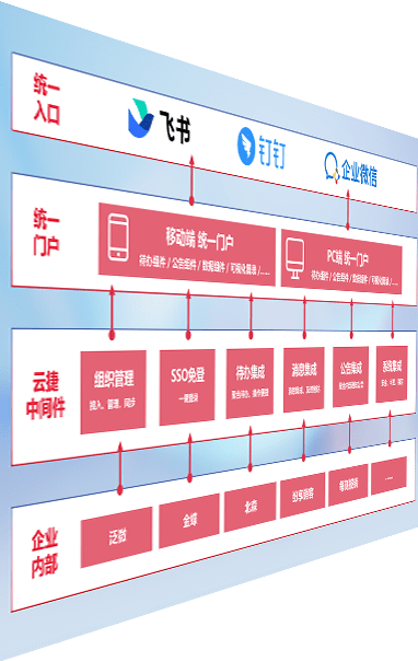 对协作平台提供支持服务,,,支持企业应用与协作平台对接,,包含组织同步、、、消息集成、、、、待办集成等。。支持目前主流的协作平台:钉钉、、、企微和飞书。。。